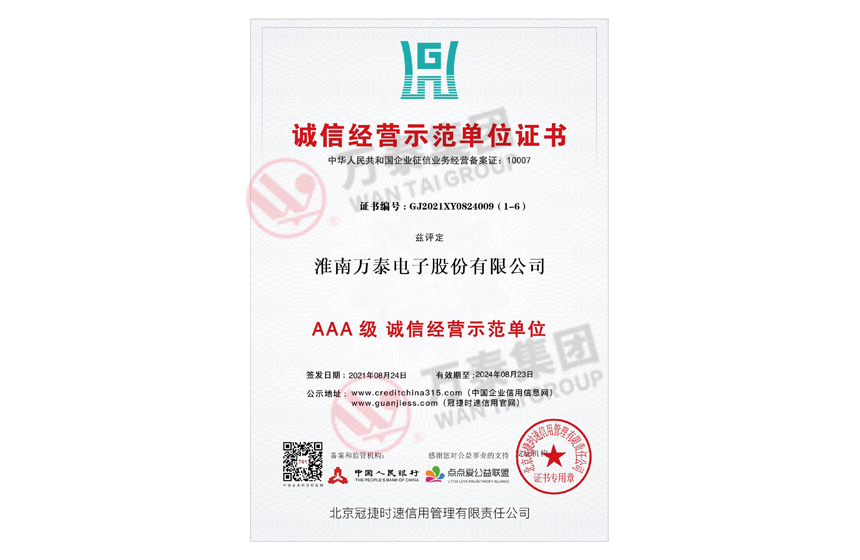 • AAA级资信等级证书