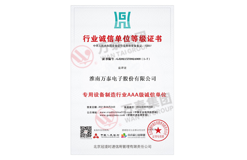 • 专用设备制造行业AAA级诚信单位