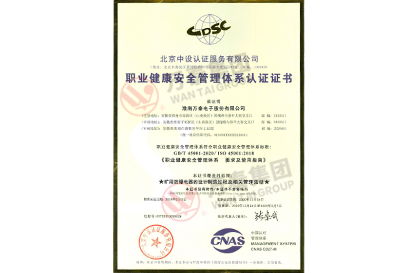 • 职业健康安全管理体系认证证书