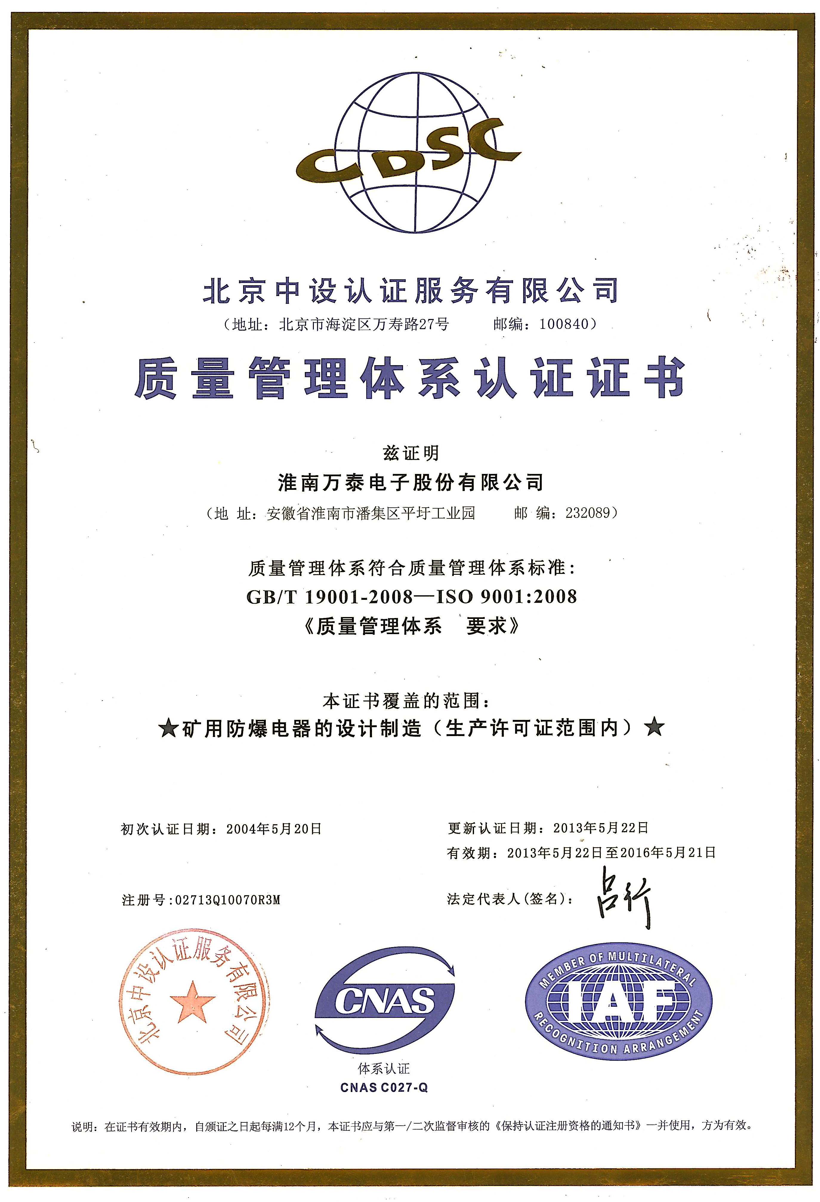 • ISO9001-2008质量体系认证证书