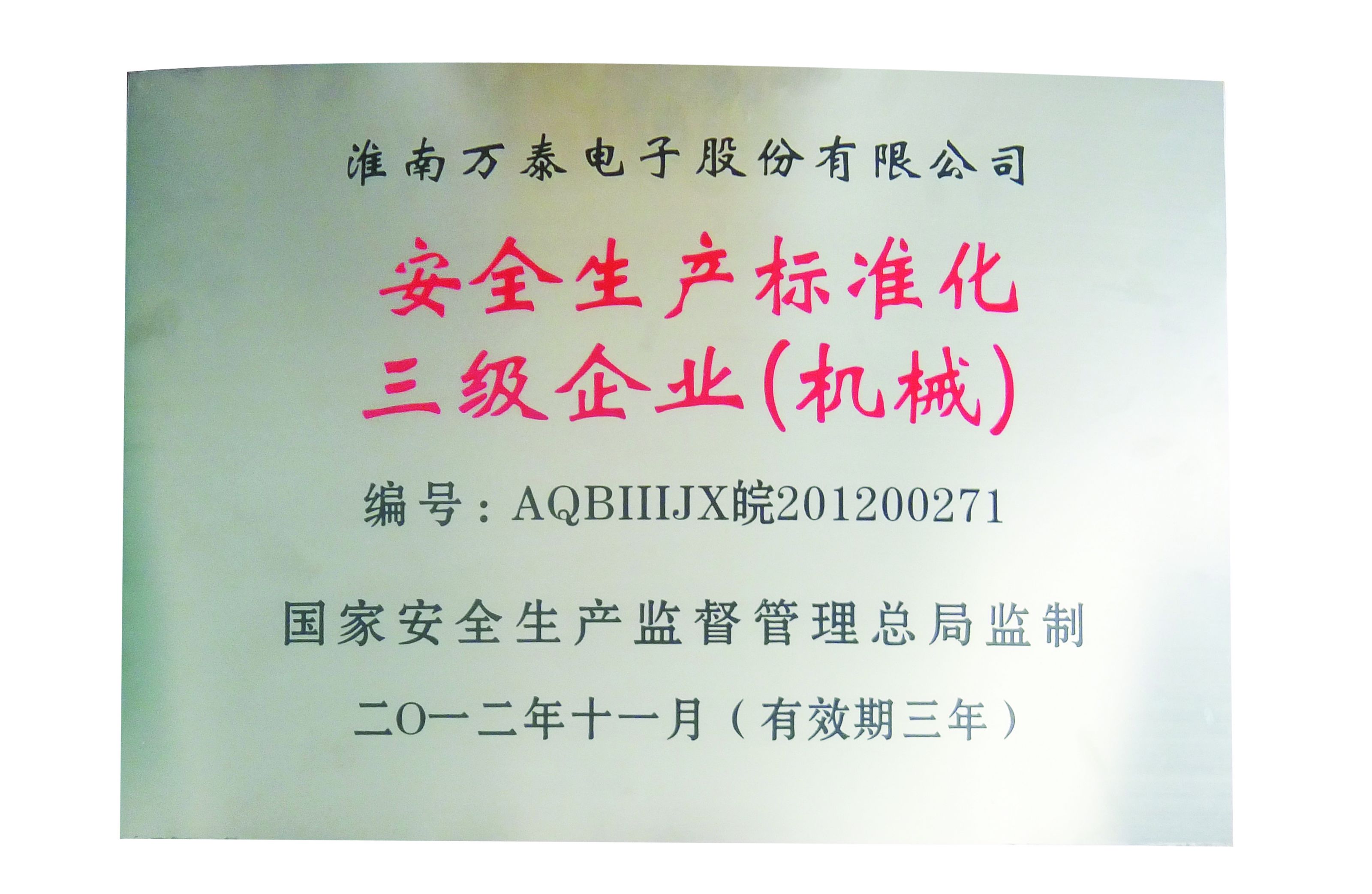 • 安全生产标准化3级企业