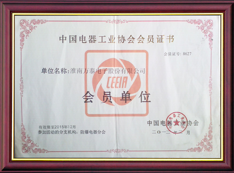 • 2012年2月中国电器工业协会会员证书