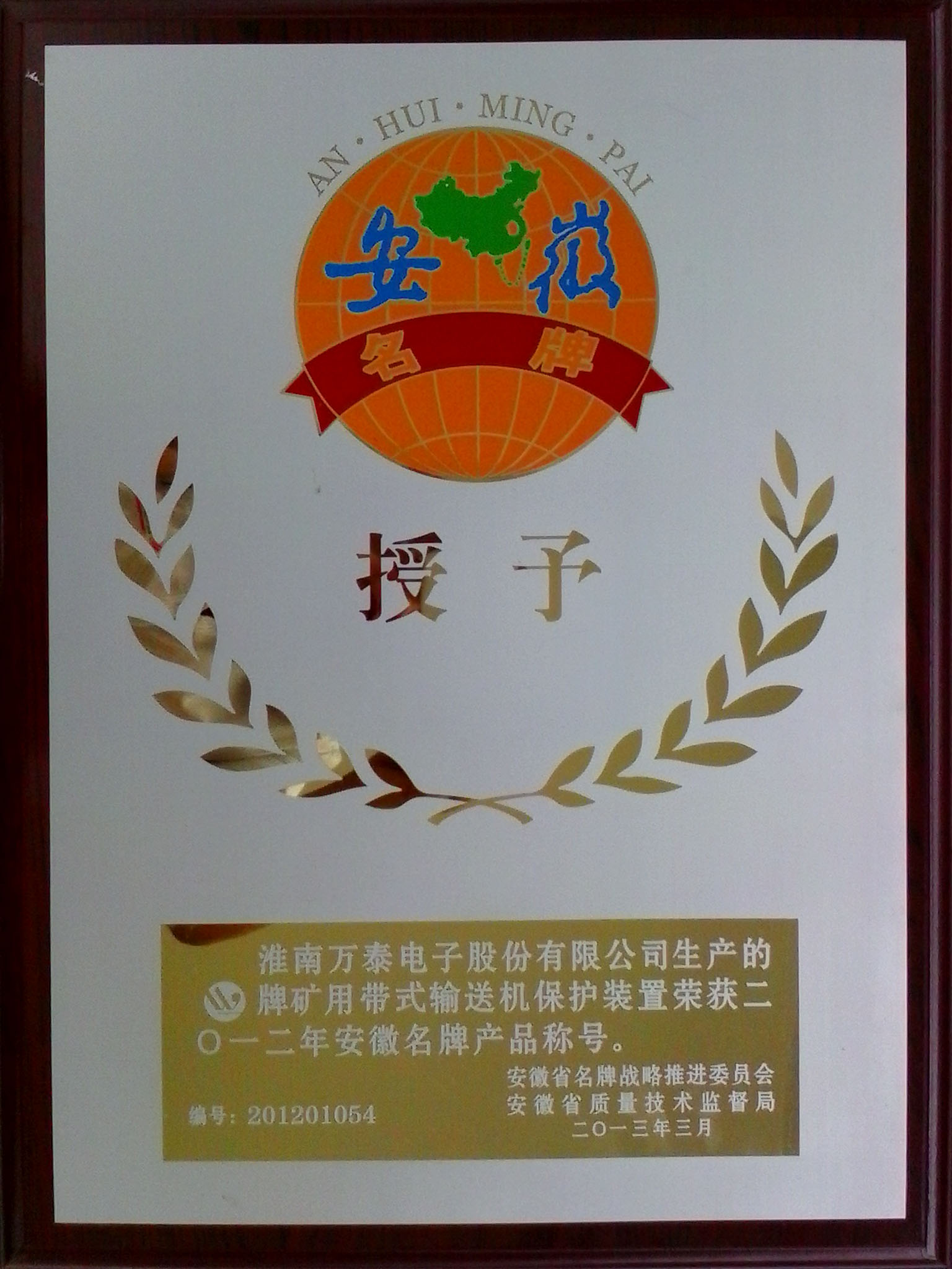• 2013年3月安徽省名牌产品——矿用带式输送机保护装置