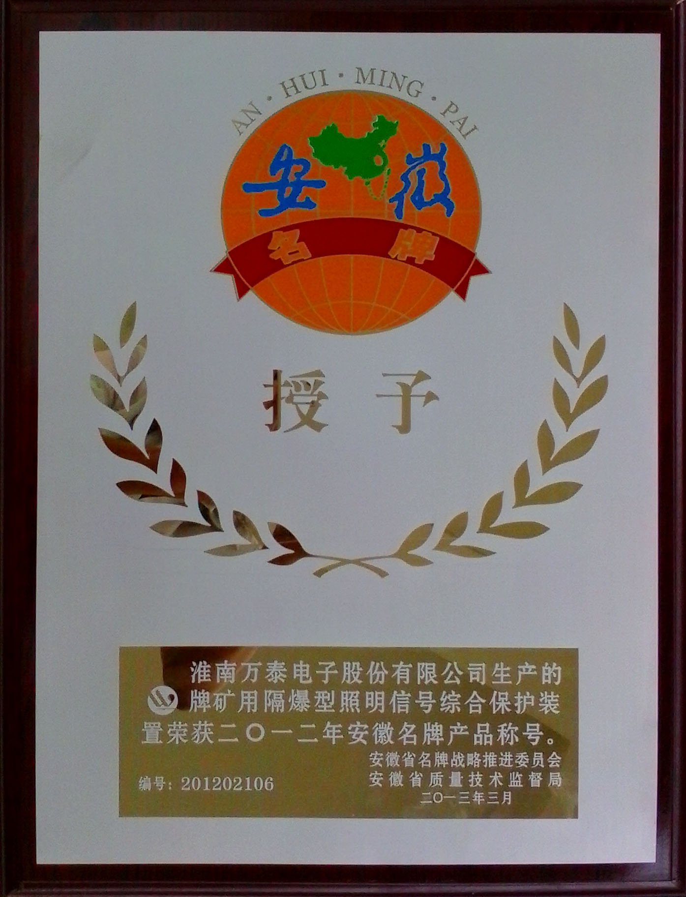 • 2013年3月安徽省名牌产品——矿用隔爆型照明信号综合保护装置