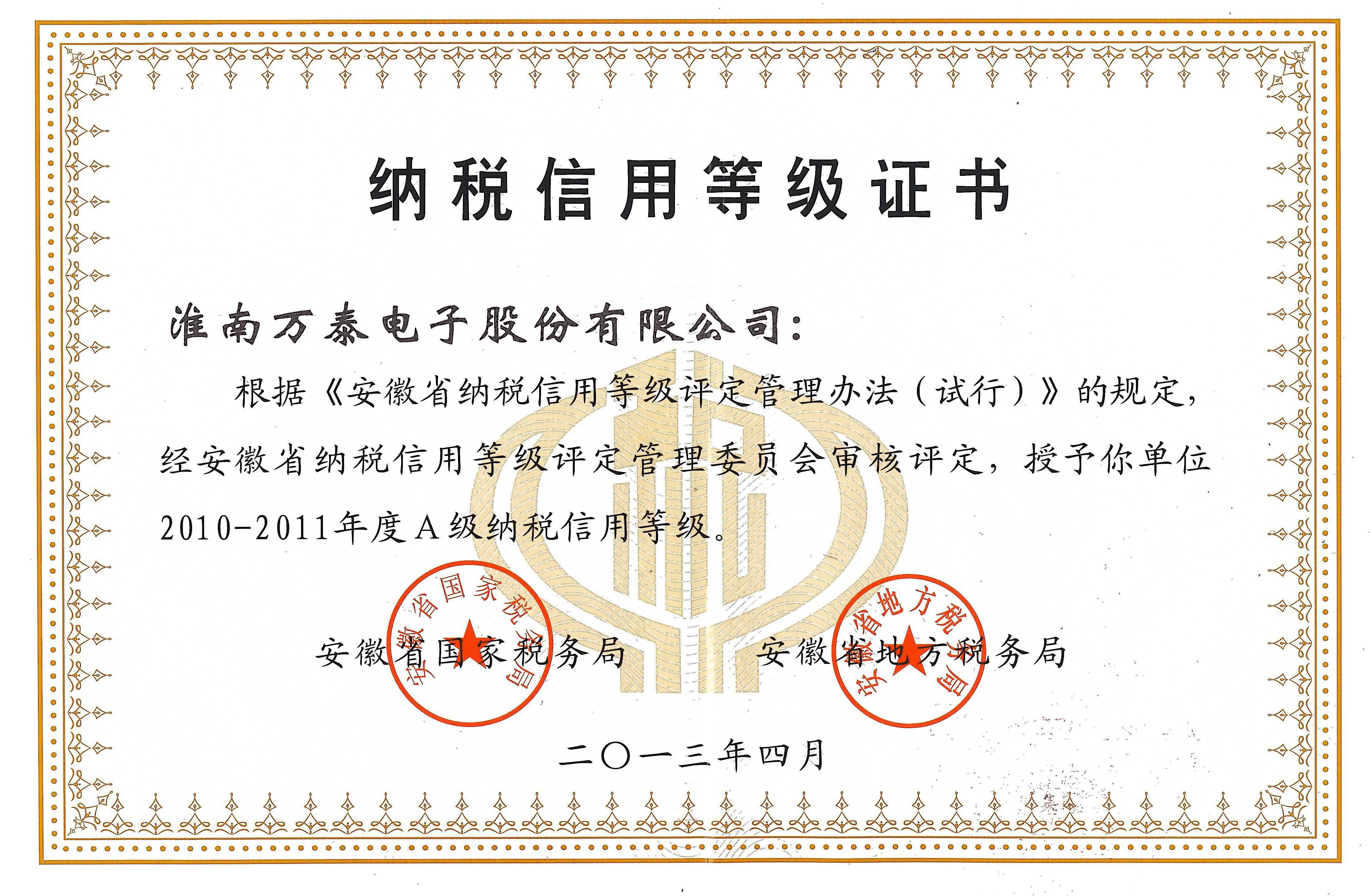 • 纳税信用等级证书