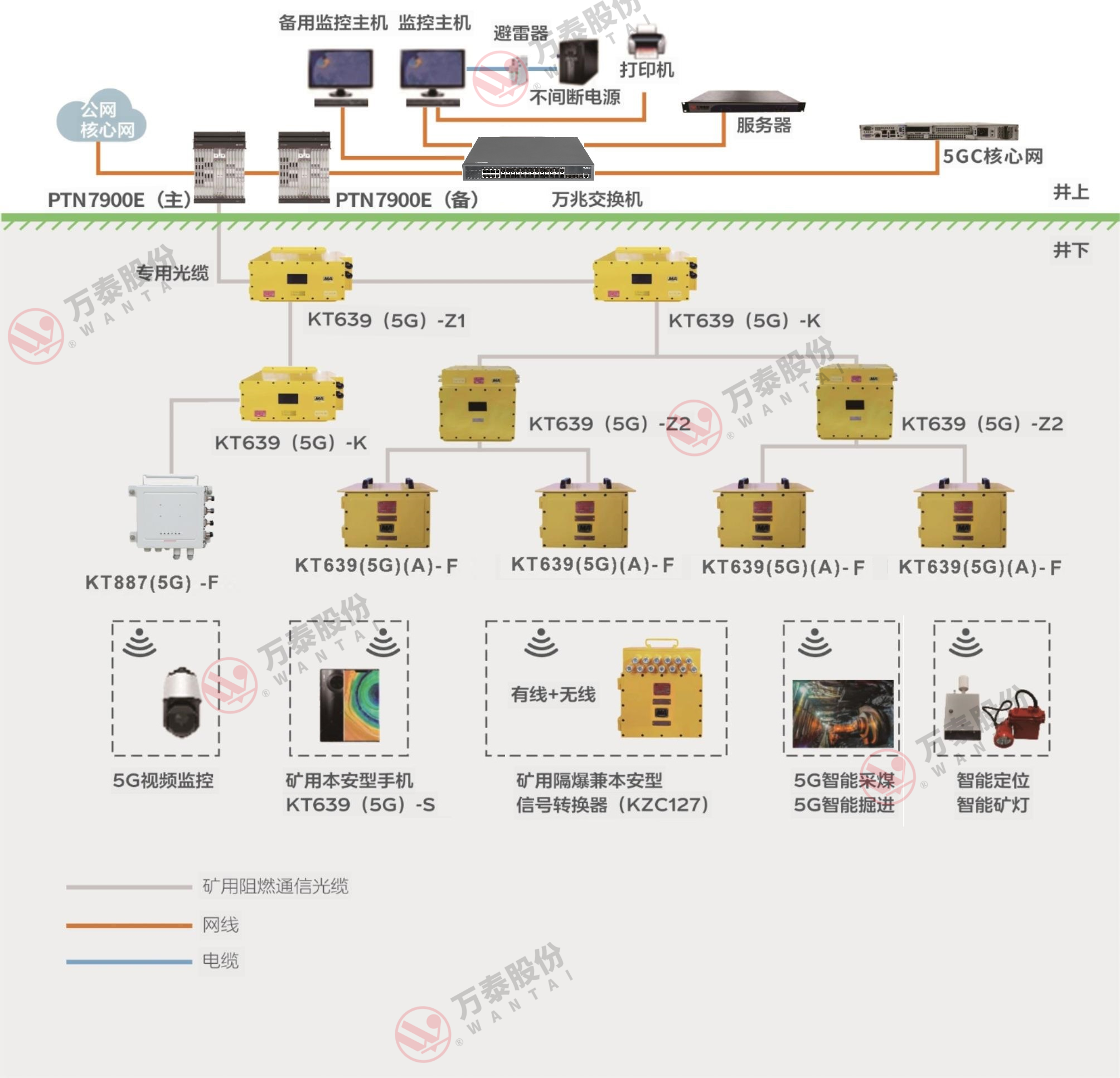 系统网络架构主要由地面平台、井下传输和无线设备组成5G无线网络覆盖,利用5G网络大带宽、低时延、海量连接和高可靠性的特性,支撑更加丰富的业务场景和应用,兼顾整个矿井现有的采、掘、运、排、通、机修、监测、调度、控制等各生产及附属环节,对语音、视频、数据三大业务进行全面承载,实现矿山的数字化、网络化、智能化融合,建设成全面感知、实时互联、协同控制的智能化矿山,加速推进“机械化换人、自动化减人”,助力企业降本增效、提质创新,实现矿企的可持续发展。